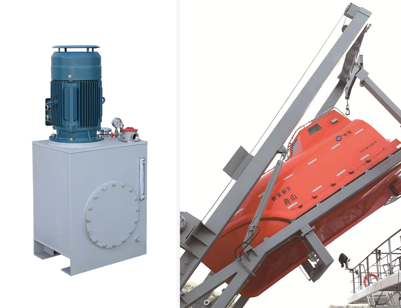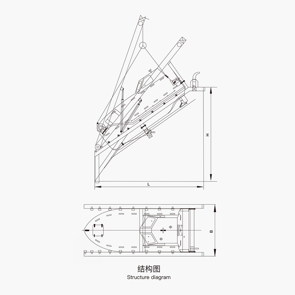 This launching appliance has been designed, built and tested in full compliance with the requirements of Regulations 4 and 34, Chapter III of International Convention for the Safety of Life at Sea, 1974, as Amended, Part 1 and Part 2 of MSC. 81(70) Revised Recommendation on Testing of Life-saving Appliance, as amended by MSC.226(82), MSC. 427(98) and MSC.472(101), and Chapter I and VI of MSC. 48(66) International Life-saving Appliance Code, as Amended by MSC. 218(82) and MSC. 425(98). In case of emergency, the free-fall lifeboat can be quickly lowered and released by this launching appliance. The appliance can also be used to lower and recover the free-fall lifeboat by means of an auxiliary lowering and releasing device.